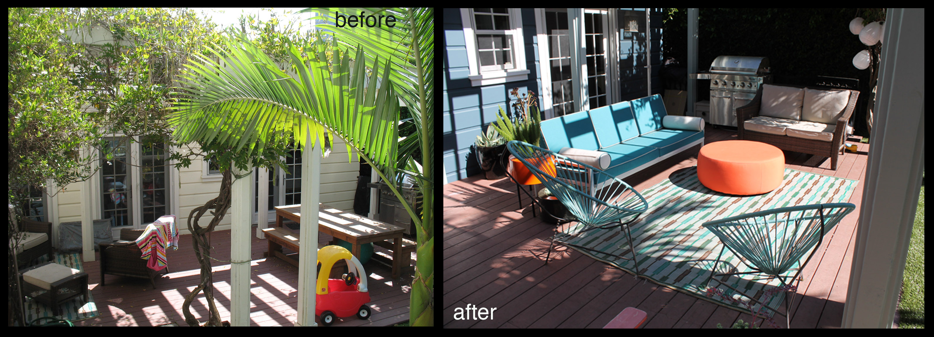 We helped our client re-imagine their outdoor living space for entertaining, and for their growing family. Besides a new coat of paint, we added new furniture and potted plants.